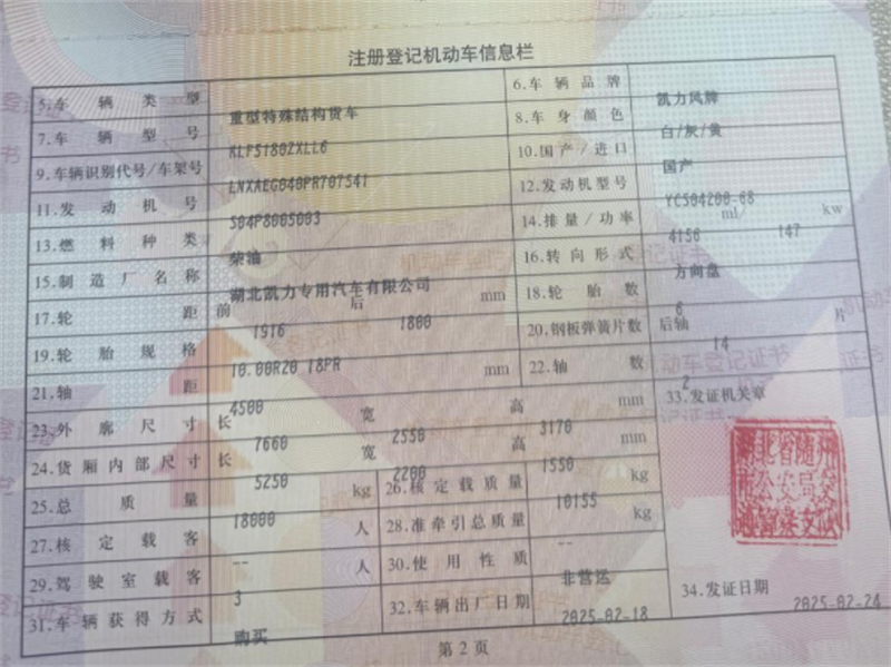 2025年2月,國(guó)六,東風(fēng)柳汽底盤(pán),容積18方,4500軸距,玉柴200馬力,10.00鋼絲胎,8檔箱,