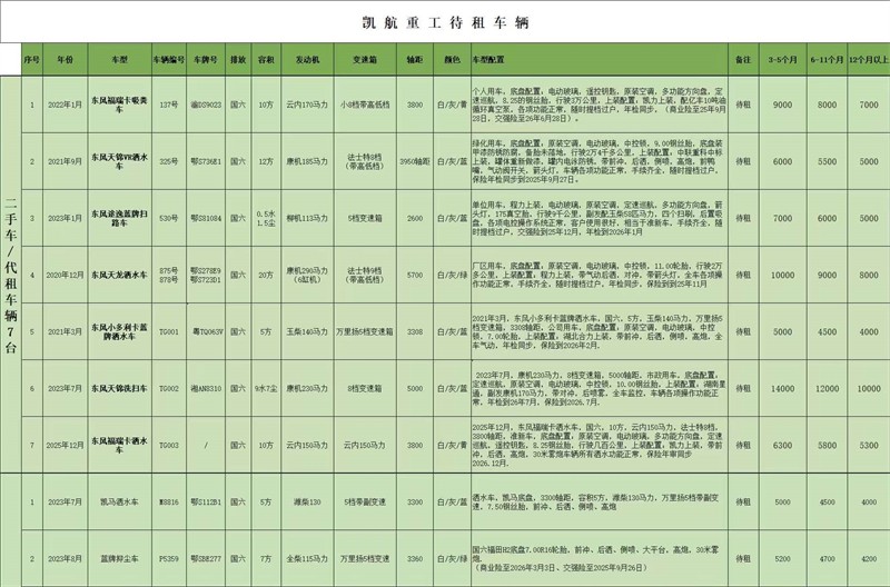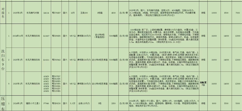所有的車(chē)輛均可租可售,租期一年或以上可發(fā)全新車(chē)輛(含新能源車(chē)輛)、提供投標(biāo)車(chē)輛資料、高價(jià)回收二手環(huán)衛(wèi)車(chē),以舊換新、